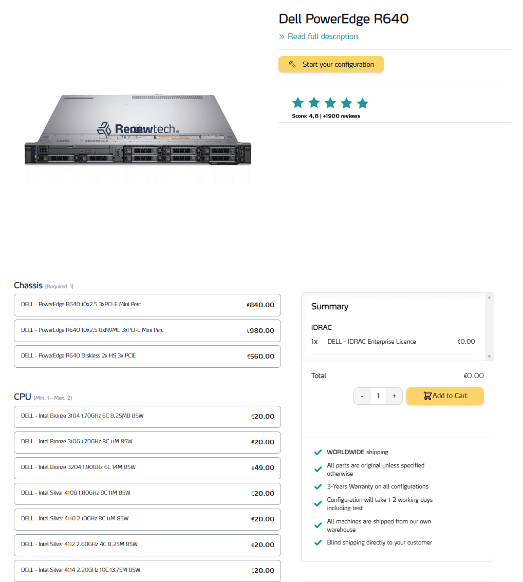 Incluso si no desea adquirir un nuevo servidor, puede utilizar nuestro configurador para saber qué piezas pueden prolongar la vida útil de su sistema actual. Además, como estamos especializados en piezas reacondicionadas, ahorrará dinero sin renunciar a la máxima calidad.